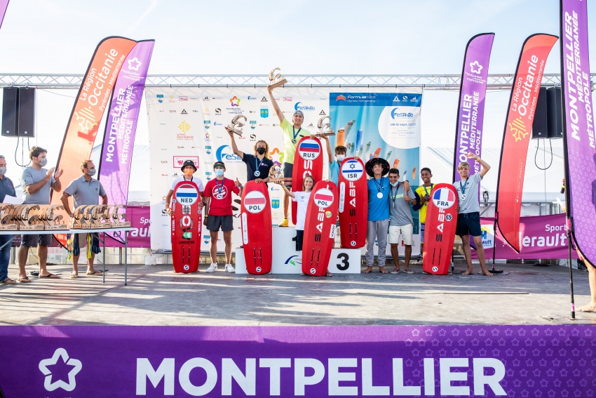 The young Russian kiteboard foil racer Mikhail Novikov took the European crown in the A’s Youth Foil one-design class on the final, climactic day of action in Montpellier, southern France.